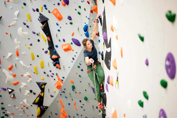 • Kind an Boulderwand im DAV Zentrum Erlangen