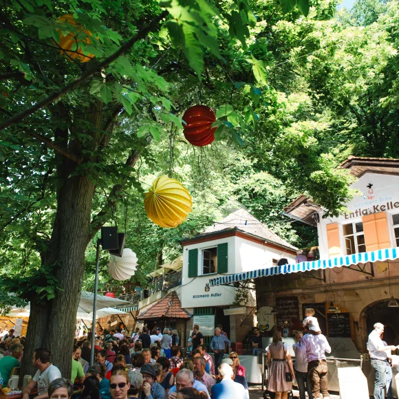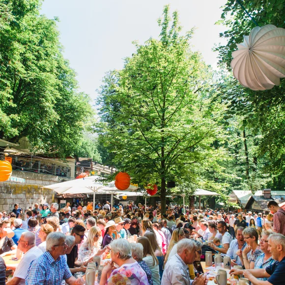Unser Biergarten am Erlanger Berg der den ganzen Sommer zum Verweilen bei einer kühlen Maß einlädt. Zur Auswahl stehen neben unserem Kellerbier wechselnde Spezialsude, Weizen, Radler und alkoholfreie Getränke. Fürs leibliche Wohl wird mit Schäufele, Enten, Hähnchen, im Keller gereiftem Emmentaler, Brezen und vielem mehr gesorgt. Und auch die anderen Sinne werden bedient: an jedem ersten Donnerstag im Monat werden die Ohren mit Musik verwöhnt, ein kühles Lüftchen aus den Bierkellern lässt die Hitze der Stadt vergessen, durch das Grün der Bäume kommen die Augen und der ganze Mensch zur Ruhe. Zur besonderen Sinnesanregung finden sonntäglich um 11 Uhr Kellerführungen statt. Herzliche Einladung!