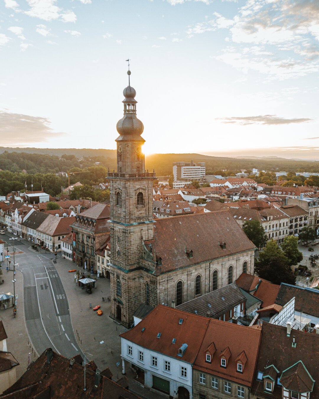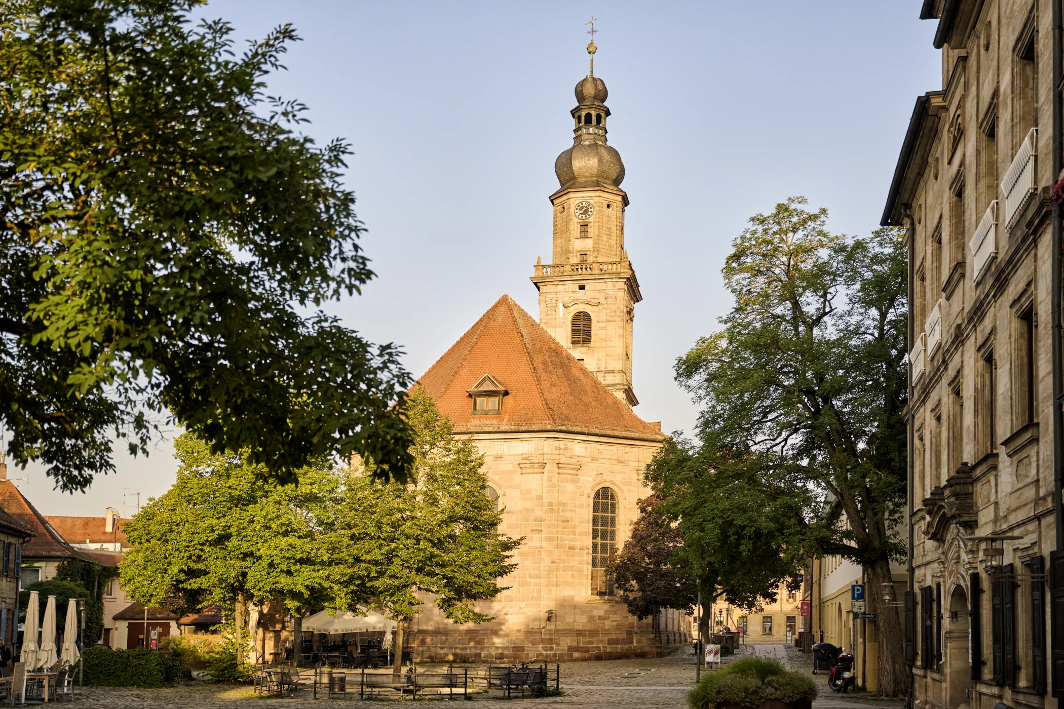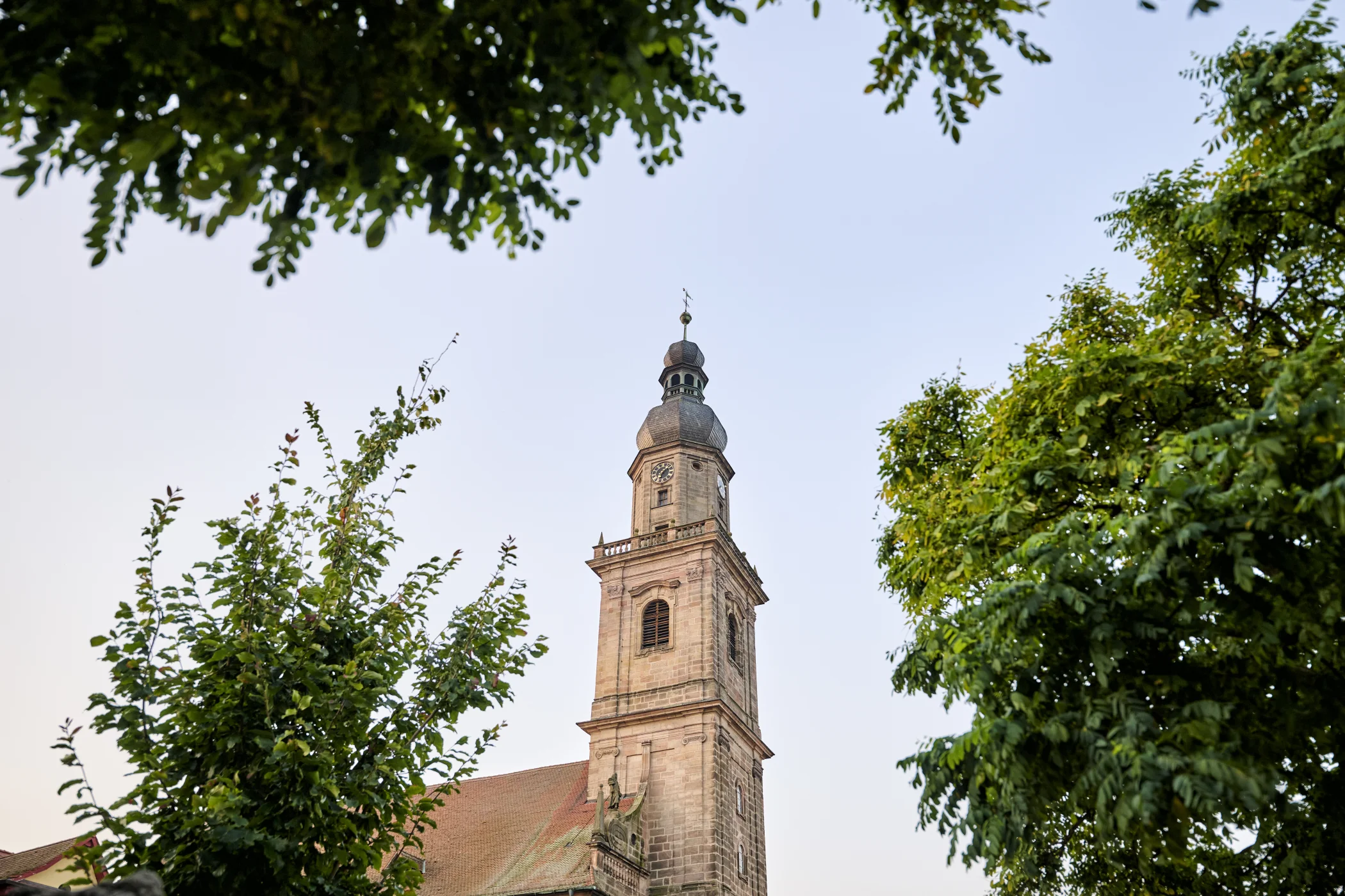 Der erste Kirchenbau an dieser Stelle (von 1288) wurde im Dreißigjährigen Krieg niedergebrannt, der zweite (von 1655) wurde Opfer des großen Stadtbrandes von 1706. Der heutige Barockbau wurde 1709–21 nach Plänen von Wenzel Perner errichtet. Der Fassadenturm wurde 1726 ergänzt. Im Inneren kann man die Stuckdecke von Johann Georg Kannhäuser, den Kanzelaltar von Johann David Räntz und Johann Phillip Göbel sowie einen Taufstein von Elias Räntz bewundern. Außerdem gibt es ein Orgelgehäuse aus der Zeit um 1720 und Holzfiguren aus der Zeit um 1500.