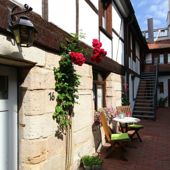 Das Hotelchen am Theater ist ein kleines, liebevoll saniertes, 260 Jahre altes fränkisches Fachwerkhaus mit sehr ruhigen Zimmern und einem idyllisch begrünten Innenhof, inmitten der Erlanger Altstadt.