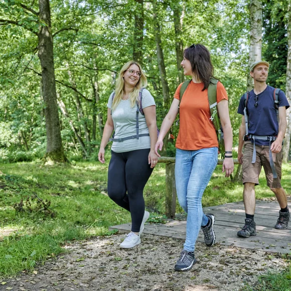 Für ein gemütliches Wandererlebnis mit wildromantischem Landschaftsgenuss ohne große Erhebungen und entsprechende Höhenmeter bist du bei dieser Tour genau richtig. Die großzügige, ruhige Natur, an vielen Ecken die geheimnisvoll wirkenden Flur- und Naturdenkmale und die Wildpferde im Tennenloher Forst mittendrin, machen das Wandern hier bei uns zu einem Naturerlebnis.Gestartet wird die Tour beim Wanderparkplatz direkt am Wildschweingehege Buckenhofer Forst Richtung Süden. Vor allem im Frühjahr sind die Frischlinge der Rotte ein schöner Anblick. Weiter geht es in Richtung Süden zum Wildpferdegehege, vorbei an einigen kleineren Weihern und interessanten Denkmalsteinen. Diese sind häufig mit kleinen Kennzeichnungsschildern versehen, welche eine Beschreibung liefern. Nachdem wir den Weg an den Wildschweinen entlang bis zum Ende gefolgt sind, biegen wir rechts ab und dann am Grenzweg links und gleich direkt rechts ab. Auch hier folgen wir dem Wanderweg bis zum Ende und biegen links ab, danach am Wanderweg halten wir uns rechts und folgen dem Schotterweg einfach geradeaus. Nun laufen wir links am Turmberg vorbei und biegen vor dem sog. Quellstein links in den Heuweg ab. Jetzt befinden wir uns schon direkt am Wildpferdegehege. Um die wertvollen Sandmagerrasen und Heiden im Tennenloher Forst zu erhalten, leben dort nun seit 2003 eine Gruppe von Przewalski-Pferden. Wer bei schönem Wetter noch einen Blick bis zur Nürnberger Burg erhaschen möchte, kann gerne noch den „Kugelschutzwall“ erklimmen. Wenn wir nun das Gehege den Heuweg entlang passiert sind, geht es direkt rechts über einen kleinen Wildweg zum „Ohrwaschl“. Von 1839-1912 war dies ein aufgelassener Steinbruch, aus dem einst Baumaterial für die Umgebung gewonnen wurde. Zeitweise befand sich hier ein Wirtshaus, das ein beliebtes Ausflugsziel war. Nach dem Ohrwaschl biegen wir am Wanderweg nach links und dann erneut nach links, zum Rehbockweiher, ab. Nach dem Rehbockstein folgen wir dem Weg nach links und gelangen zu einer größeren Wegkreuzung mit der sogenannten Kreuzeiche. An dieser laufen wir direkt rechts vorbei. Nun geht es weiter nördlich in Richtung Buckenhof. Kurz vorher, am Weißen Ruhnsein biegen wir links ab und folgen dem Weg einfach in Richtung Westen. Somit gelangen wir wieder zum Startpunkt, dem Parkplatz am Wildschweingehege.