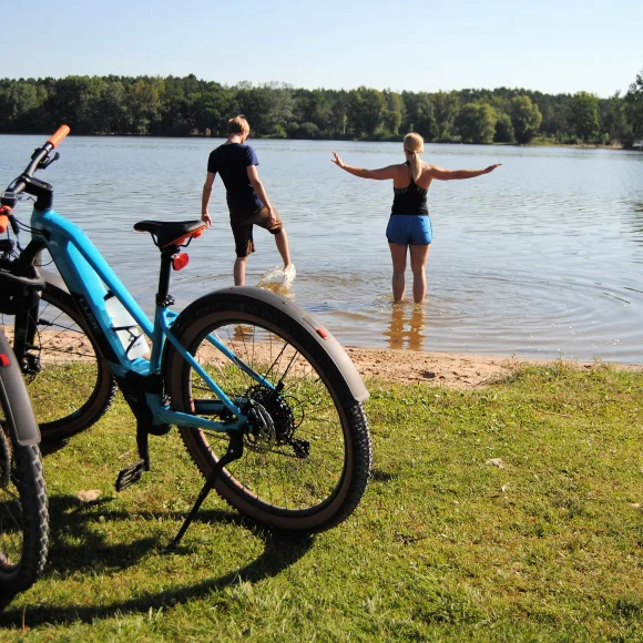 Abwechslungsreiche Tour mit wenigen Steigungen, die die Hugenottenstadt mit den umliegenden Stadtteilen und seiner grünen Lunge verbindet. Die Tour führt entlang des bekanntesten Badesees der Stadt, dem Dechsendorfer Weiher, des im Frühling und Sommer von Störchen bevölkerten Wiesengrunds sowie den Tennenloher Forst, in denen ein Wildschweingehege und Urzeit-Pferde zu einer Entdeckungstour einladen.